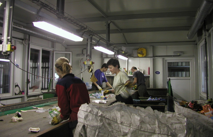 Už zde je nutný značný podíl lidské práce. Pracovnice na třídící lince ve Žďáru nad Sázavou například z velkých balíků vytahují fólie, které se sem dostaly jako odpady z výrobky. „Tyhle odpady ani nemusejí jít přes třídičku,“ poznamenává Iva Zeroniková ze společnosti ODAS, která linku provozuje. „Odpady z výroby nejsou nijak znečištěné a většinou jsou jednodruhové. Mohou se proto rovnou dávat do balíků.“