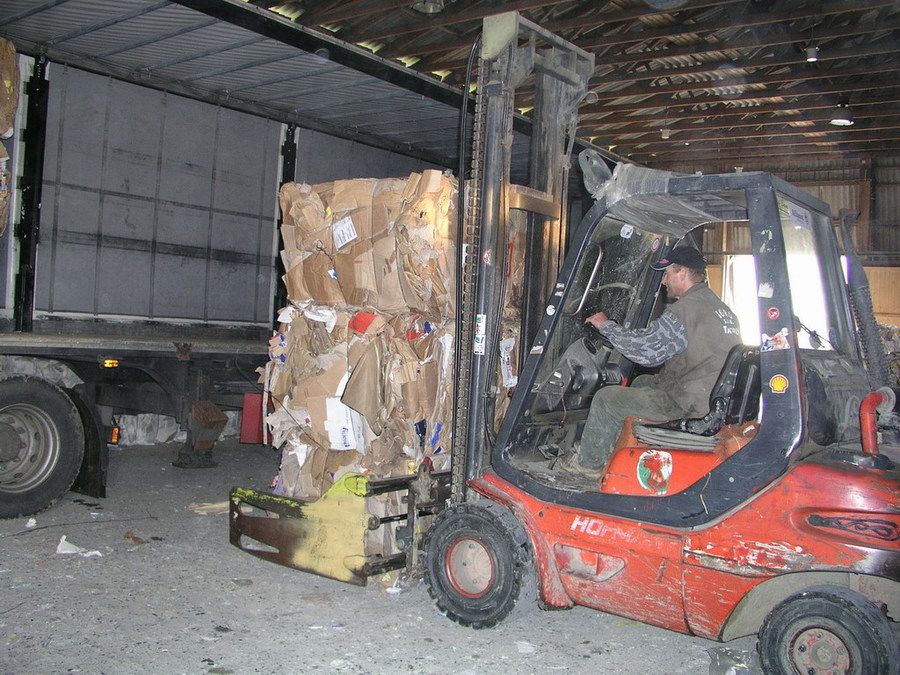 Na samotném počátku přiveze svozový vůz materiál posbíraný z kontejnerů po městě. Před konečným dotříděním se jednotlivé komodity (papír, plasty) skladují v hale. Přicházejí sem ale také odpady ze supermarketů nebo továren: lepenkové krabice a fólie z rozbalování zboží, odřezky papíru z papíren nebo kousky plastů).